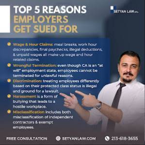 Setyan Law - Pasadena Employment Lawyers es una opción confiable y profesional para aquellos que buscan asesoramiento legal en leyes del empleo. Con una reputación sólida y una visión de la justicia social, esta firma se compromete a defender los derechos de los empleados y brindarles la mejor representación legal posible.